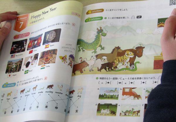 5・6年生の授業では、干支(えと)の学習をしていました。子丑寅卯辰巳午未申酉戌亥ですね。それぞれの英語が