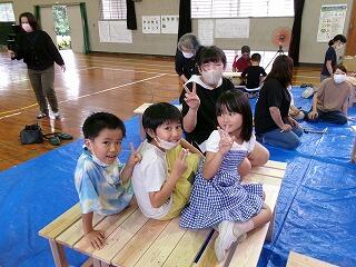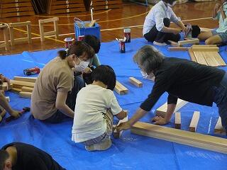 放課後子ども教室のみなさんが木工教室を開いてくださいました。