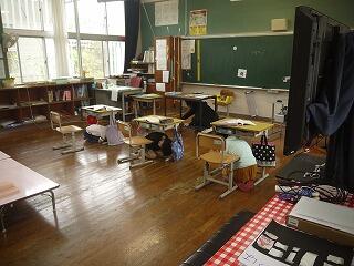 地震の避難訓練