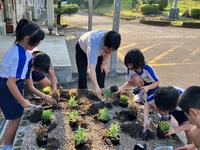 【9月3日】 幸ヶ丘小では子どもたちが、毎朝落ち葉の掃除をボランティアでしてくれます。今朝は、落ち葉掃除をお休みして、花壇に花を植えました。夏休みもあってしばらく花壇に花がなかったので、久しぶりに花壇がきれいになりました。これからきれいな花を咲かせてくれると嬉しいです。