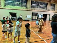 【9月4日】 運動会に向けて職員と保護者、児童が参加して生駒音頭と小林音頭の練習をしました。踊りを経験している人は思い出しながら、初めての人は周りの人の身振り手振りを見ながら練習しました。練習には、生駒音頭を歌われている森山様と振りの指導に西立野様、スポーツ推進委員の小園様、大久保様にも来ていただきました。運動会では、地域の方みんなで楽しく踊れるのを楽しみにしています。