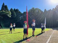 【9月3日】 運動会に向けての運動場での練習が本格的に始まりました。暑い中での練習は、立ってじっとしているだけでも大変です。初めての練習でしたので、体調は大丈夫かと心配しましたが、みんな元気に練習に取り組んでいました。指先まで伸ばして立つ、話している人をしっかり見て話を聞く、てきぱきと動くなどなど、どれもしっかりできていてびっくりしました。
