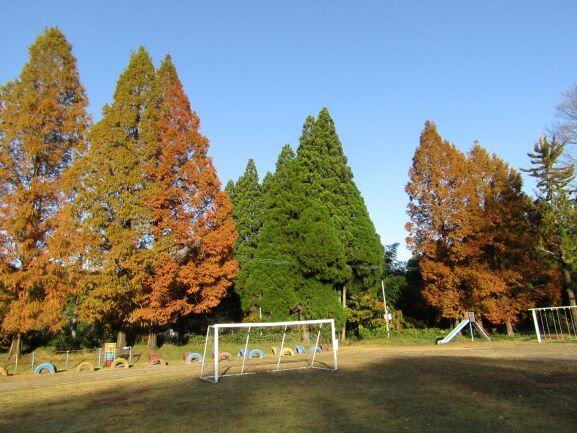 山を背景に走る子どもたちです。なんか~いいですね(^_^)v 落ち葉があるのもいい・・・。