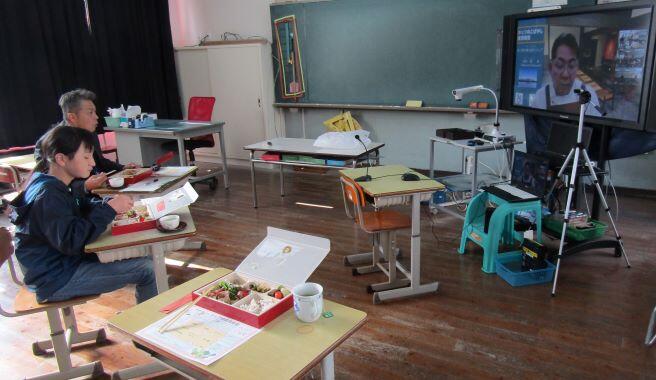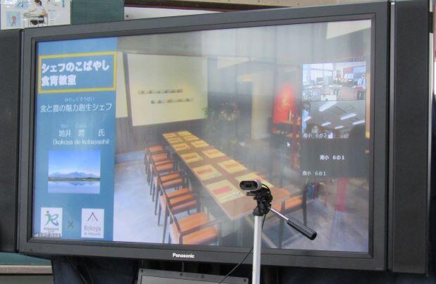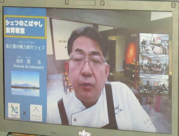 シェフから料理の具材やソースなどの説明がありました。食べながらお話を聞きました。下は本校の様子です。今回は南小の