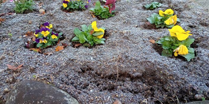 学校の花壇を見ると、白くなっていて、土が盛り上がっていました。霜柱がありました。(この日も半袖です!(^_^;))