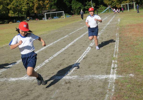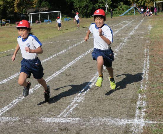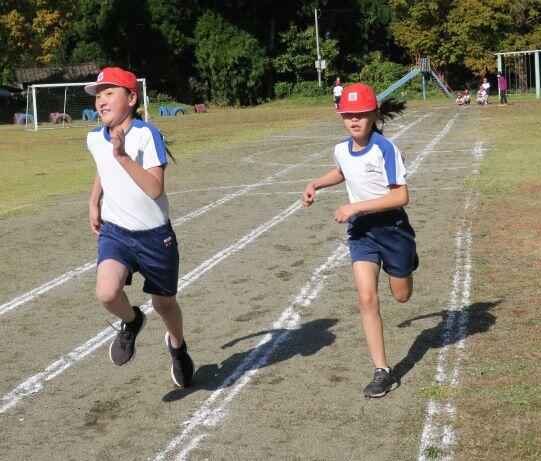 追いかけます!抜かれないぞ!どっちもがんばれ! 低学年のスタートの様子です。