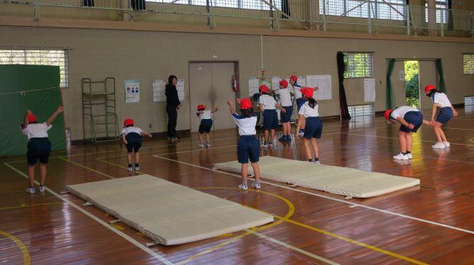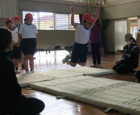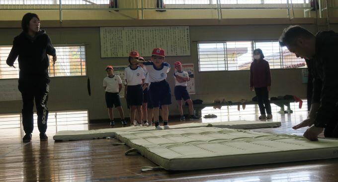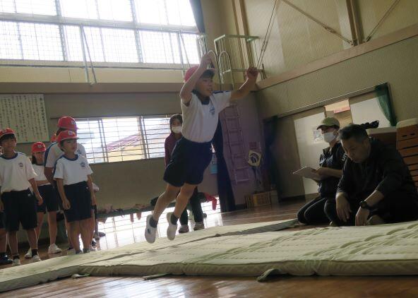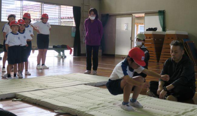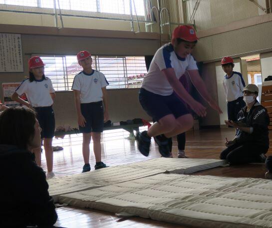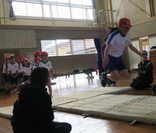 ここでも担任の先生が飛び方を伝授しています。(^^) それっ!3年生が飛びます!