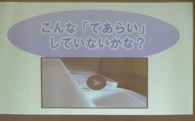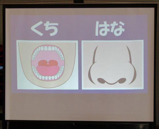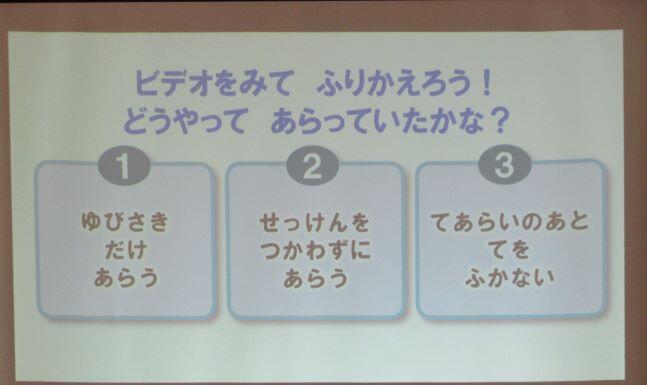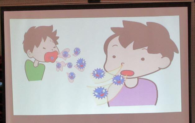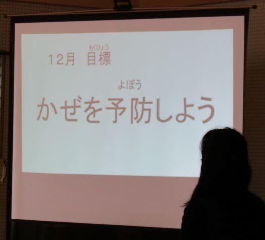 12月の月目標は「かぜを予防しよう」です。保健室の先生がプレゼンを使って分かりやすくお話しくださいました。