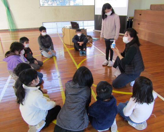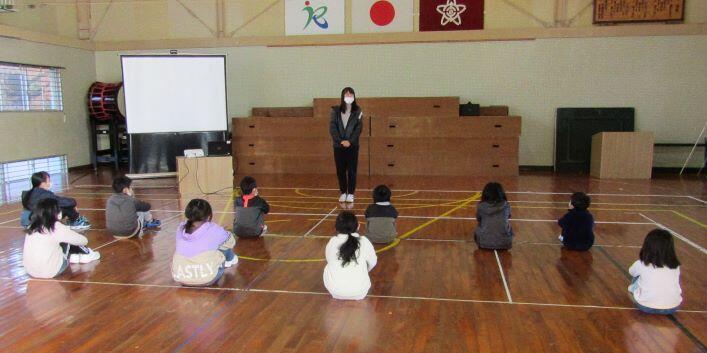 校長先生のお話や表彰のあと、保健室の先生から12月の目標に関するお話がありました。
