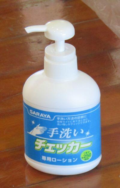 手についた菌がなどがどれくらい触った他のものについているかの実験をしました。下のようなローションを使って、