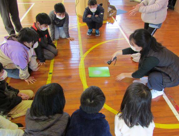 前日の29日(月)に全校朝会を行いました。体育館はひんやりしていて、まるで冷蔵庫の中にいるようでした。(>_<)