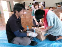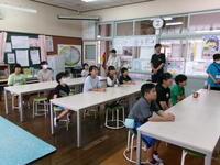 【8月2日】 夏休みが2週間ほど過ぎた8月2日に登校日がありました。久しぶりに子ども達の元気な顔を見ることができました。学校では、教頭先生から、「原爆」や「戦争・終戦」の話もあり、みんな真剣な顔で聞いていました。また、登校日終了後には、地域の方の主催で木工教室があり、木材をのこぎりや金づちを使って、親子で本立てを作りました。暑い中での作業でしたが、みんな上手に作っており、夏休みのよい思い出になりました。