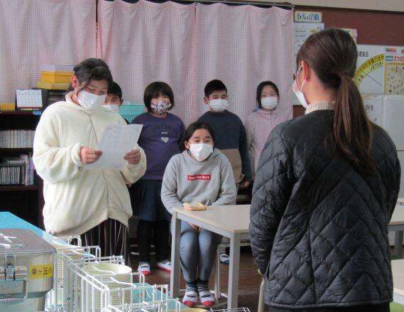 お話しの後は、給食の配膳や給食の様子を見学されました。一緒に給食も食べましたよ!(*^_^*) 最後に児童代表がお礼を