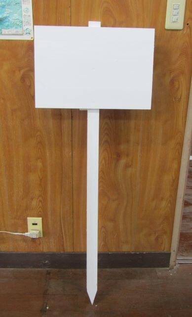 前の看板は根元が少し腐っていましたので、用務員さんに撤去していただき、新しい看板を作っていただきました。張り替えられるようにラミネートをして、立ててもらいました。