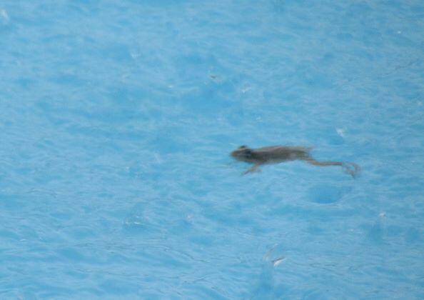 外プールを使うことがありますので、外のプールにも入ってみました。雨も降っていたので、外プールはちょっぴり冷たくて、寒くなりました。カエルさんもプール開きかな?(^^;)