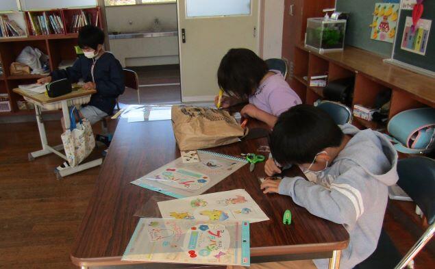クラブ活動を覗いてみました。前回と同じく、プラ板の工作でした。前回は電子レンジを使っていましたが、今回は
