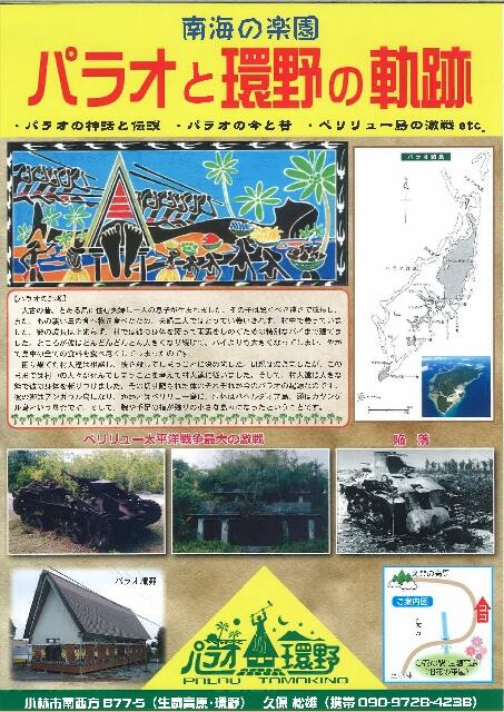 パラオ共和国 南洋にある島国です。太平洋戦争終戦後の昭和21年、アメリカの軍艦に乗って日本へ帰国されたパラオの日本人のうち、行くところがなかった人々はこの年に環野地区へ入植されました。平成8年に入植50周年記念式典が行われ、記念誌が発行されました。記念誌を読むと、環野の入植の歴史が分かります。そんな関係もあり、先日、最初の入植者の方が来校され、ぜひ、「パラオ環野」に来て欲しいというお話がありましたので、訪問しました。「パラオ環野」の中には、パラオ共和国の神話、伝説の話や今と昔の写真、そして、太平洋戦争中の1944年のペリリュー島の激戦の写真などが展示してありました。来校された最初の入植者の方はご高齢でしたが、パラオ島での生活や入植後の様子などを熱心に語られました。歴史を語り継いでいくことの大切さを改めて感じた訪問でした。
