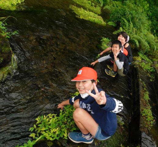 最初に水源地に行きました。山の中から湧いているようです。“つめた~い!” 幸ヶ丘あたりは、湧水なのでしょうか?学校の近くには水の工場もありますね。