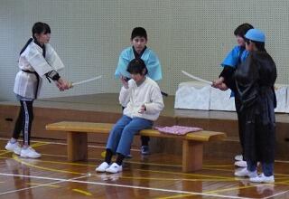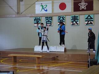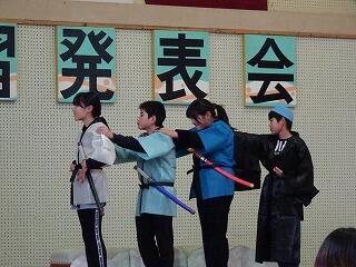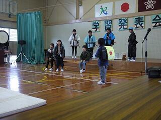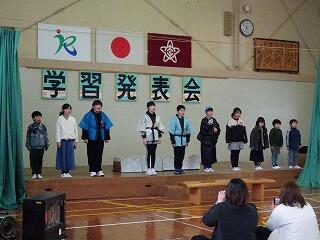学習発表会の劇のタイトルは、「どうする4人」全校児童10名が出演して名演技を披露しました。