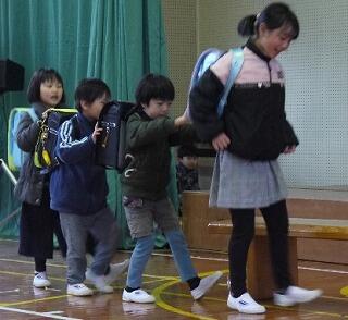 次にやってきたのは小学生たち。ジェンカで登場。歴史の年号を覚えているところです。