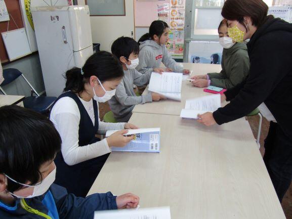 活動の様子です。一人に一つずつテキストがあります。「困りごと」を少なくしてから、次は力を伸ばしていきます。幸っ