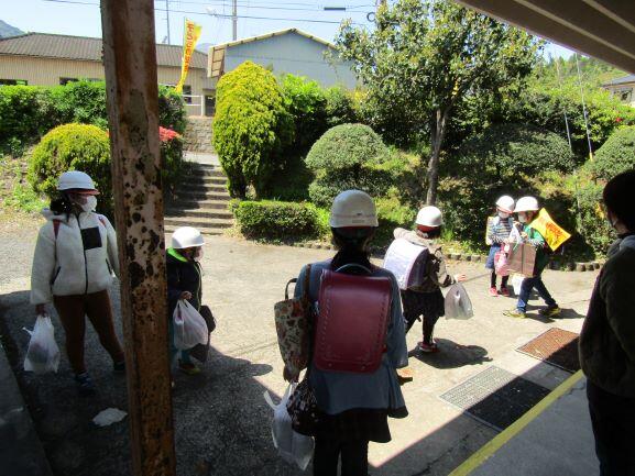 4月28日(火)この日は臨時休校になって初めての登校日でした。前の日は何だか落ち着きませんでした。しかし、子どもたちが登校してくると、気持ちがぱあーっと明るくなりますね。(そう感じるのは私だけでしょうか・・・・?)子どもたちはいつものように登校し、校門であいさつをして教室に入りました。(ヘルメット姿がとても可愛らしく思えました。)13人、全員登校しました。午前中の3時間、学習したり、お話ししたり、学校再開までの過ごし方の注意を聞いたり・・・。あっという間に時間が過ぎていきました。担任の先生方も久しぶりに子どもたちに会えて、とっても嬉しそうで、2つ2つ・・・いや、ニッコニコの笑顔でした(^_^)
