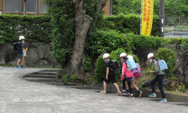 5月21日(木) この日は授業・給食ありでの一斉登校日の4日目でした。子どもたちにも疲れがくるかな?と思っていましたが、子どもたちは元気そのものでした。この日も玄関前の坂を上がって帰って行きました。4月から連続して19日、欠席なしです。頑張っていますね。子どもたちの頑張りもあるでしょうが、保護者の方々の支えが大きいと思います。ありがとうございます。25日からは学校再開になります。ご家庭での子どもたちへの支援をよろしくお願い致します。