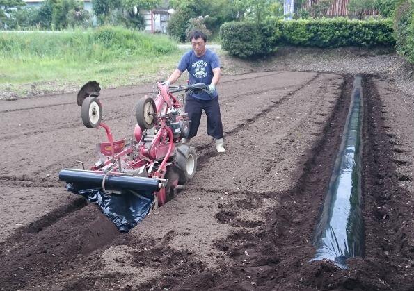 こうやってマルチを張っていくのですね。農業機械ってすごく考えて作ってあります。開発した人ってとても素晴らしいです