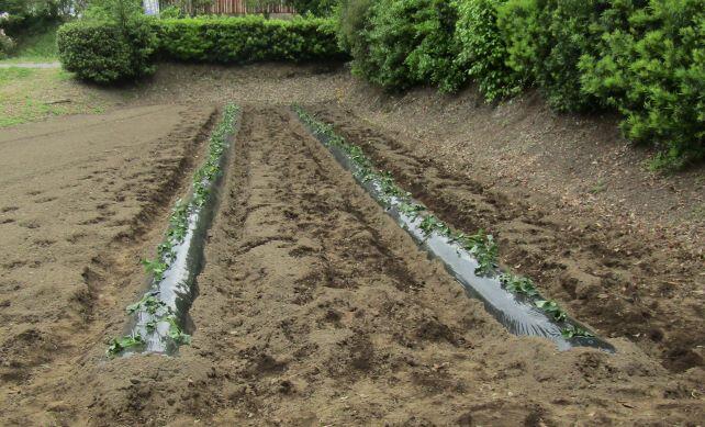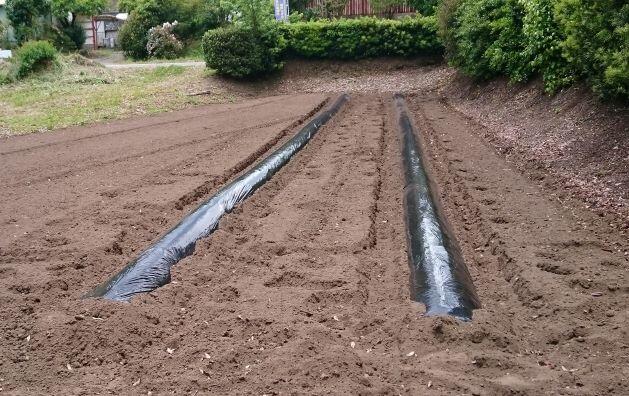 ね。2列のマルチが整いました。次の日(26日)は植え方です!