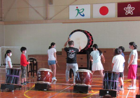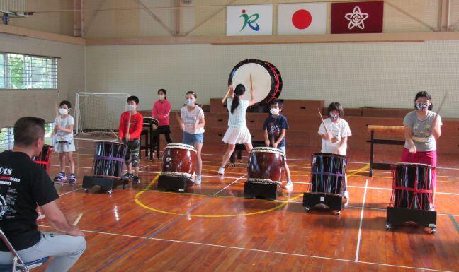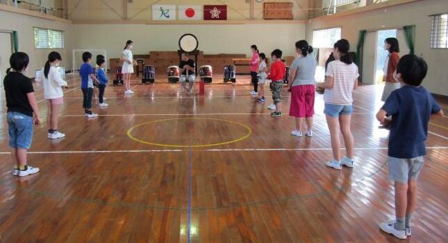 練習開始!ポジションなどの確認をしながら、実際にたたきました。きれいにたたけていましたね。体育館に心地よい響きが広がりました。