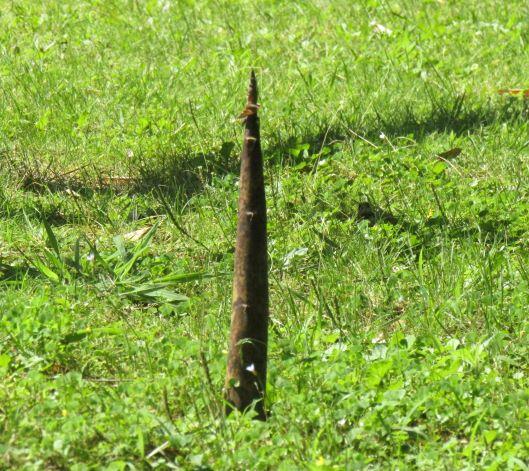 体育館を後にして、運動場に出てみました。この日は素晴らしい青空で、雲一つありませんでした。運動場を回っていたら、タケノコを見つけました。“あら~、こんなところに・・・。” 触ってみると、とても柔らかかったです。この後、どうなるのかな?しばらく観察してみましょう(^_^)