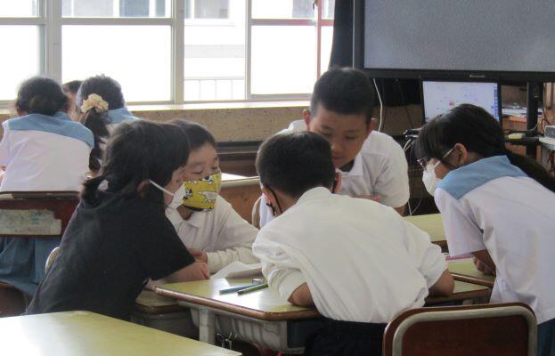 6年生は、道徳と算数の授業を一緒に受けました。授業をされる先生は西小林小の6年担任の先生です。修学旅行前(11月初め)には事前学習をします。5年生は7月2・3日(木・金)に行われる合同宿泊学習の事前準備、学習をしました。