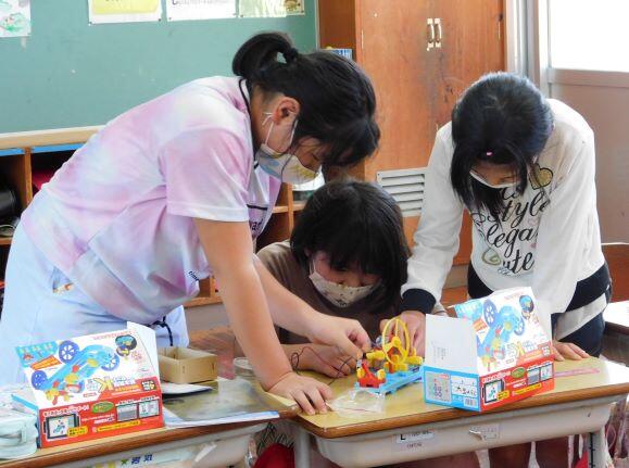 工作です。今はこんな工作キットがあって、子どもたちが組み立てることができます。仕組みなんかもよく分かることでしょう。どの子どもも一生懸命ですね。(^_^)