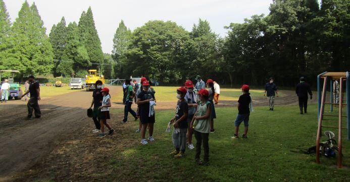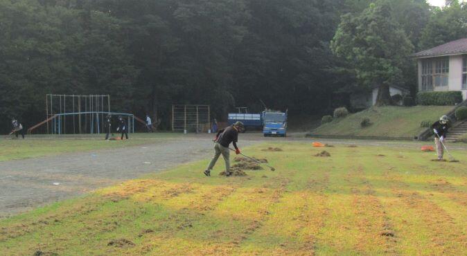 8月24日(月) この日から学校が始まった自治体もあるようです。小林市は次の日の25日(火)から1学期の後半がスタートします。全校児童が元気に登校してくれることを願います。さて、23日(日)に行われた奉仕作業の第2弾です。今回は作業後の片付けや運動場の整備の様子を紹介します。