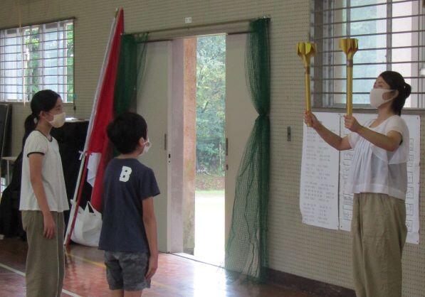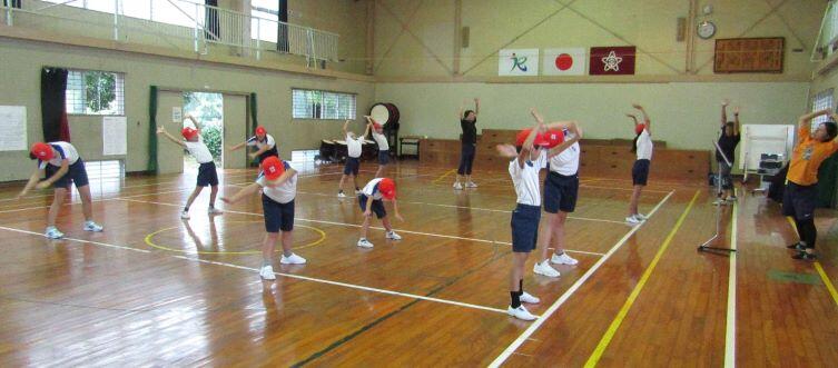 心構えについて話を聞きます。意識して練習に取り組みましょう! ラジオ体操第1をやってみました。だいたいのことは覚えていたようですが、細かい動きや姿勢はまだまだです。これから修正していきましょう!
