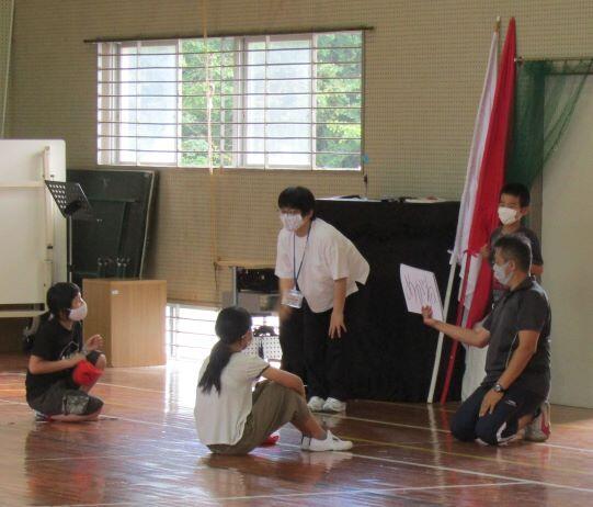 次は、前に誰かが立たれた時の動きを確認しました。壇上に上がられたら、身体をその人に向ける!おへそを向けることを意識しましょう。最後は各団に分かれて、応援について話し合いました。“去年はどんな応援があったっけ~?”