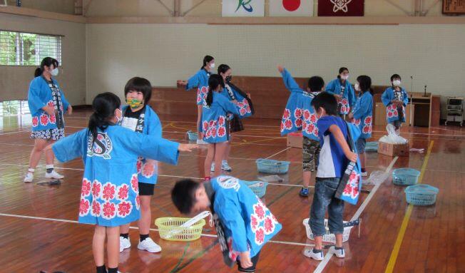 大玉転がしは親子でワンチーム!親御さんを置いていかないようにね(^_^;) 生駒音頭に新小林音頭、保護者の方も大勢参加してくださいました。ありがとうございました。閉会式です。今年は白団が優勝しました。おめでとう(^o^)