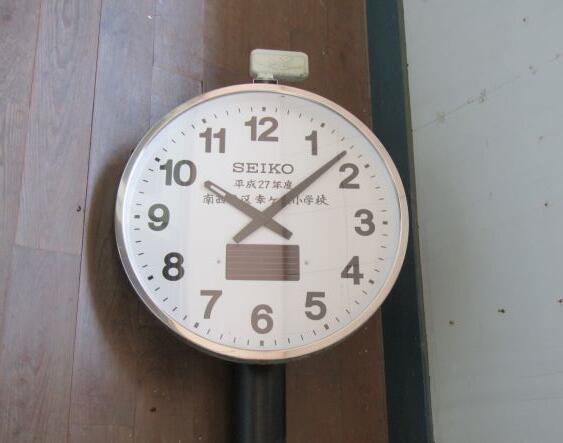 9月17日(木)は振替休業日でした。用務員さんがスロープを作ってくださったことはご紹介しましたが、今回は時計台についてご紹介します。この時計台は平成27年に、生駒高原へ通じる道路と通学路の別れ道に立てられました。南西3区とPTAのご協力によるものです。それから5年、その時計台が撤去されることになり、学校へ寄付されました。設置場所は検討の結果、運動場の西側入り口付近に17日に設置しました。みなさん、よろしくお願い致します。