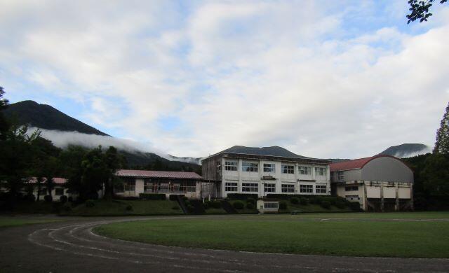 学校の近くで撮りました。雲海とまではいきませんが、雲がたなびいていました。朝の幸ヶ丘三岳です。