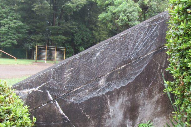 一方では、同じ色柄のチョウもいました。蜘蛛の巣は幾何学模様できれいですね。数時間で巣を作り上げます。
