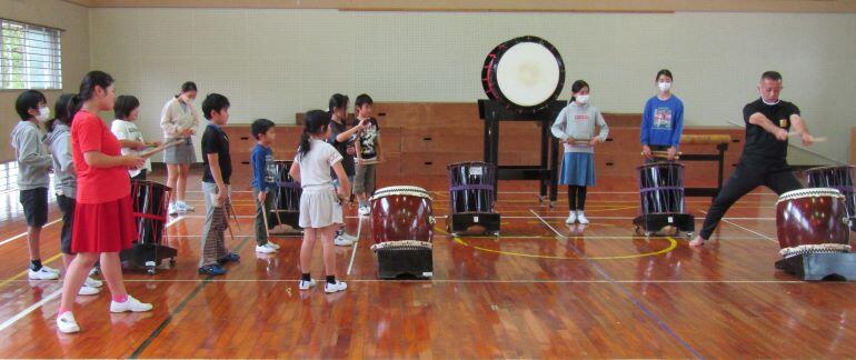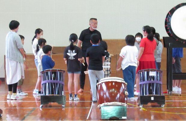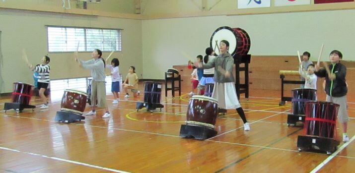 打つ!太鼓に近いと腕が縮こまる!とお手本を示されながら指導してくださいました。