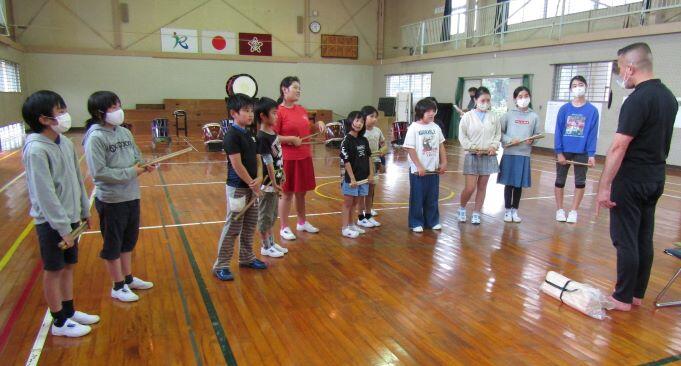 この日は子どもたちにとって、嬉しいことがありました。新しい“ばち”をもらいました。檜(ひのき)の“ばち”です。