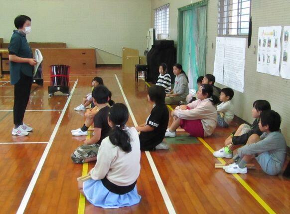 10月21日(水)の第3弾です。今回は太鼓の練習を紹介します。年間を通して宮崎市から指導に来ていただいています。この日も指導日でした。前回、隊形を変えたので、この日はその隊形での練習となりました。指導者の方からは注意点を3つお話しになりました。①:太鼓に近すぎるので、もっと離れて打つ!②:太鼓はたたくではなく、打つ!(前にもありました。)③:たたいたときに手のひらを締める!この3つを意識しながら練習を行いました。次回の発表は11月13日(金)の西諸県音楽大会です。残り3週間!頑張ります!