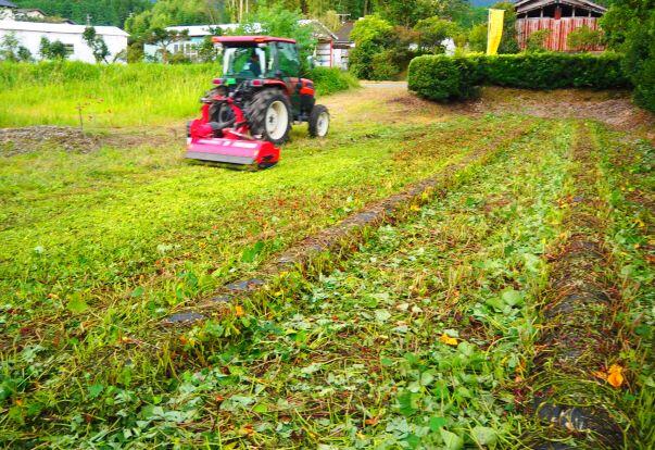 草とツルを刈ってくださいました。前の日の22日(木)が雨だったので、この日の朝にツルを切ったり、マルチ