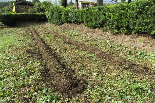 子ども農園の移り変わりです。草やイモのツルがびっしり生えていました。前々日の21日(水)の夕方に
