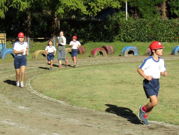 自分のペースで走ったり、誰かを目標にしたりして走ります。教頭先生も子どもと一緒に走ります。(^_^)