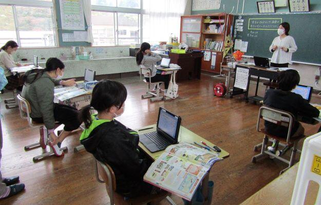 1・2年生は「いいところさがし」の授業でした。ドラえもんに登場する子どもたちのいいところを出し合いました。そ