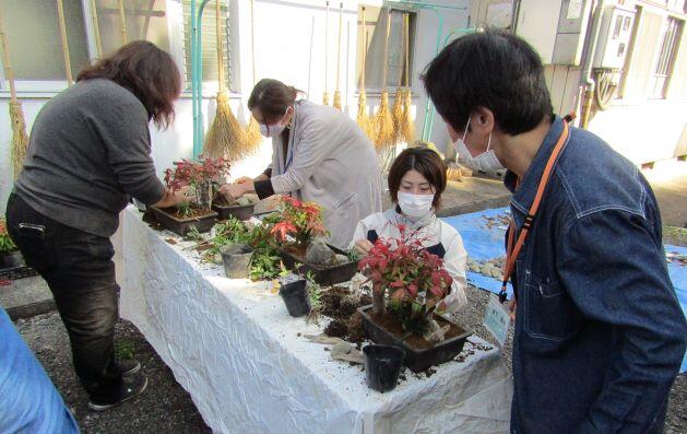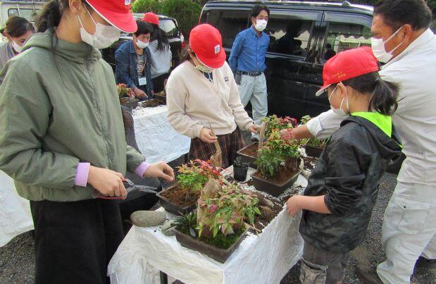 5・6年生は園芸に挑戦!ミニ盆栽づくりです。ものづくりマイスターの方の指導の下、作りました。