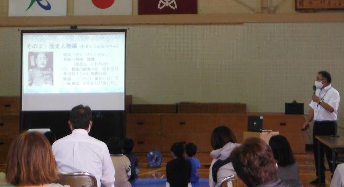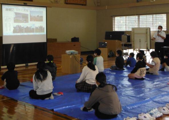 10月30日(金) この日の朝、全校朝会を行いました。はじめは校長先生のお話、次に教務主任の先生からのお話がありました。月1回の集会で、子どもたちが自分の振り返りをしたり、これからの取組を確認したりする大事な集会です。次回は11月30日(月)になります。