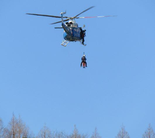 下の写真のように、降下訓練や人をつり上げる救助訓練をしていたようです。
